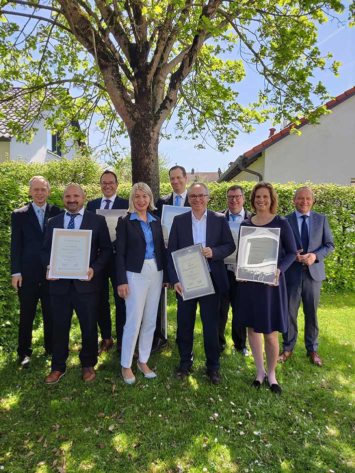 Foto v.l. Vorstandsvorsitzender Peter Reischmann, Jürgen Kaltenbacher, Florian Strobel, Sigrid Mittermair, Michael Meng, Stefan Bscheid, Oliver Lepar, Claudia Meinardus, Vorstand Johann Roth