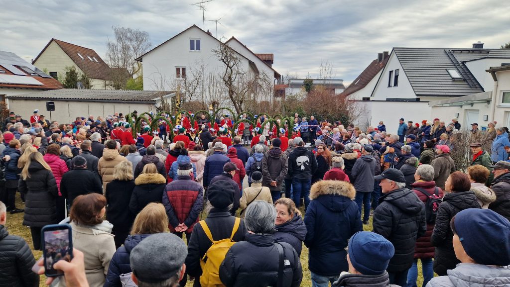 Bei bestem Schäfflertanz-Wetter präsentierte die Raiffeisenbank München-Nord am 10. Februar die Münchner Schäffler auf dem Parkplatz neben der Hauptgeschäftsstelle in Unterschleißheim. Rund 300 Besucherinnen und Besucher nutzten die Gelegenheit, den traditionellen Tanz live zu erleben.